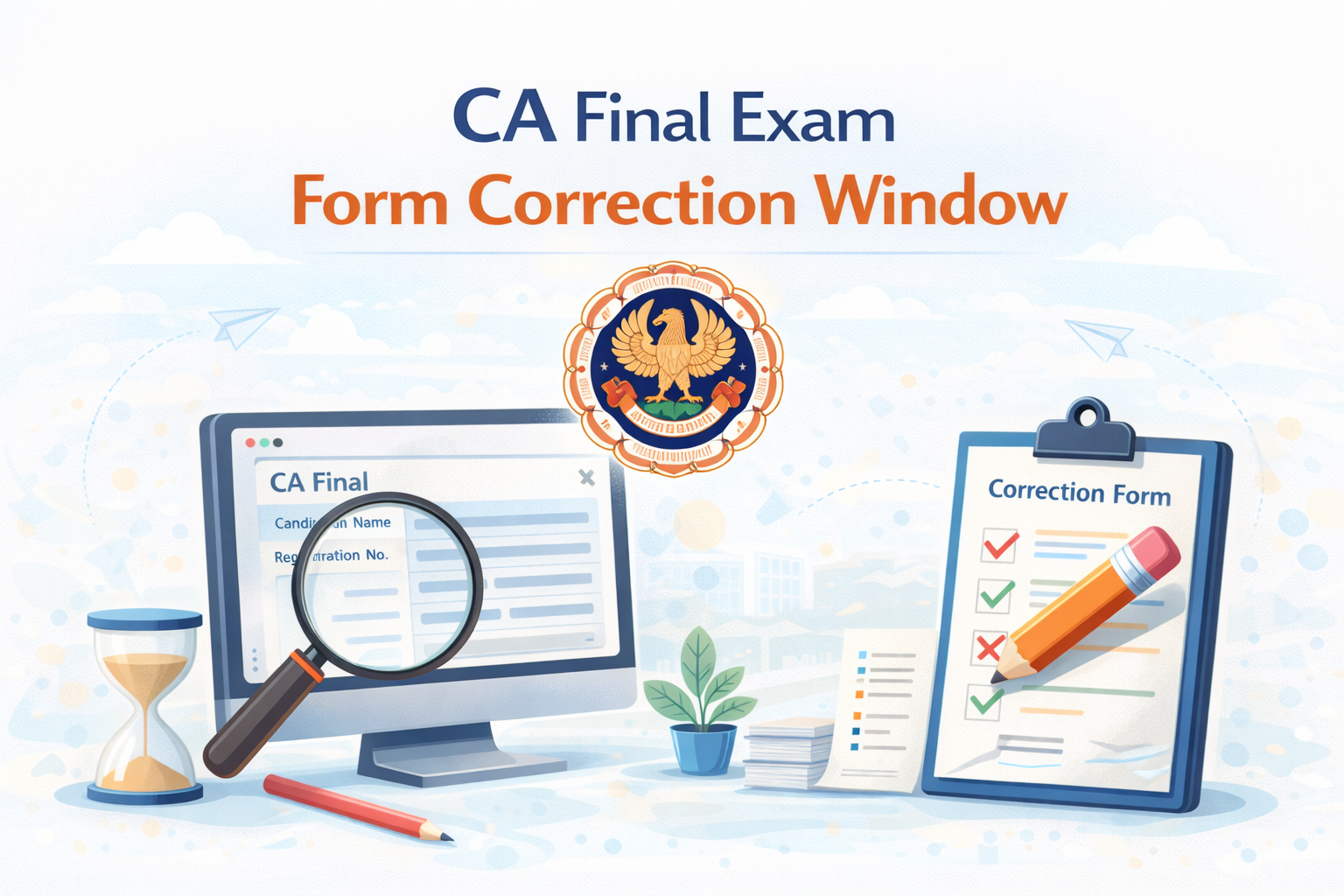 Check the CA Final Exam Form Correction Window May 2026 dates, correction steps, editable details, and important guidelines to avoid mistakes before ICAI exams.