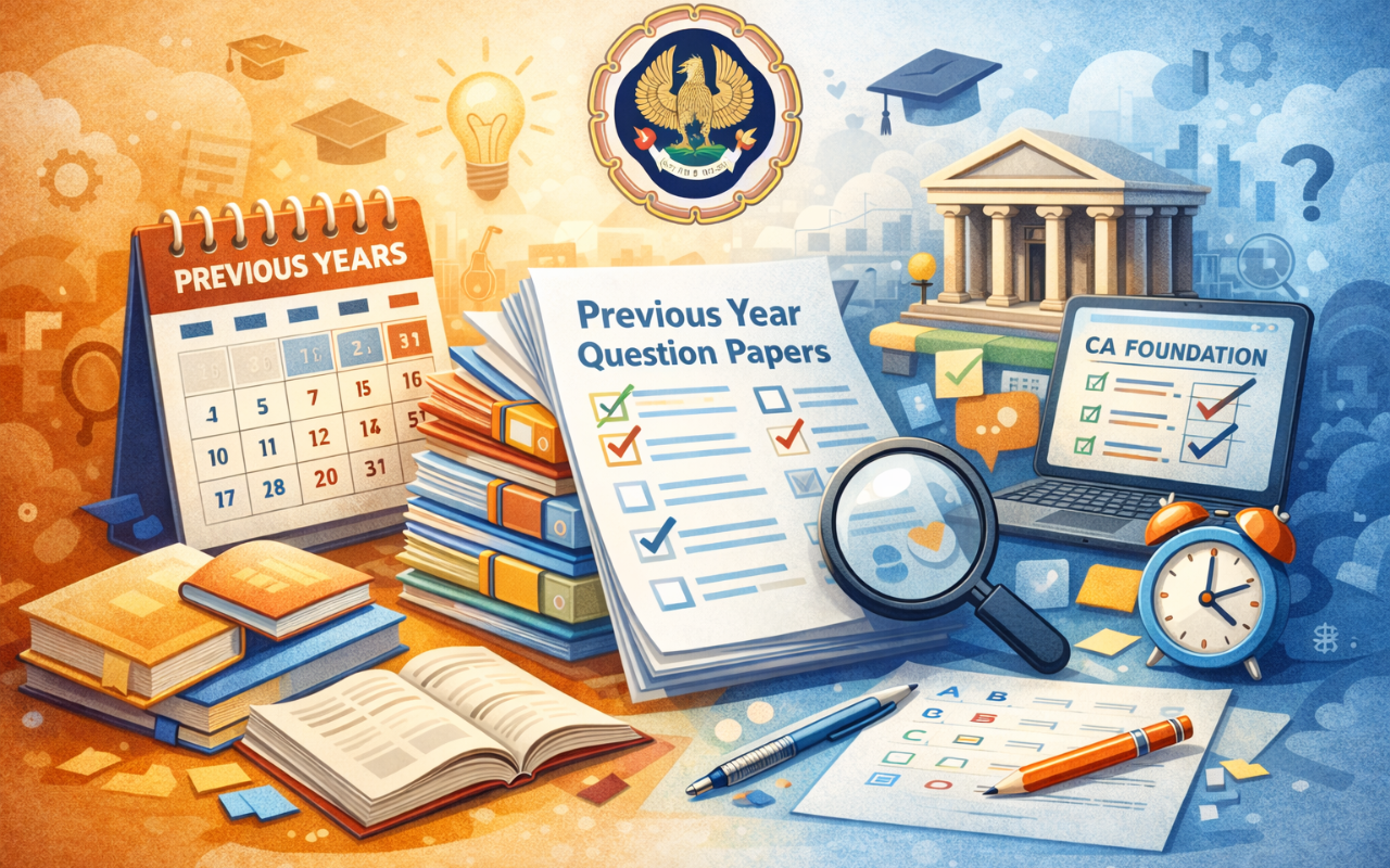 CA Foundation Previous Year Question Papers May 2026 are past exam papers released by the Institute of Chartered Accountants of India (ICAI) to help students understand exam format, important topics, and the level of questions asked in previous attempts.